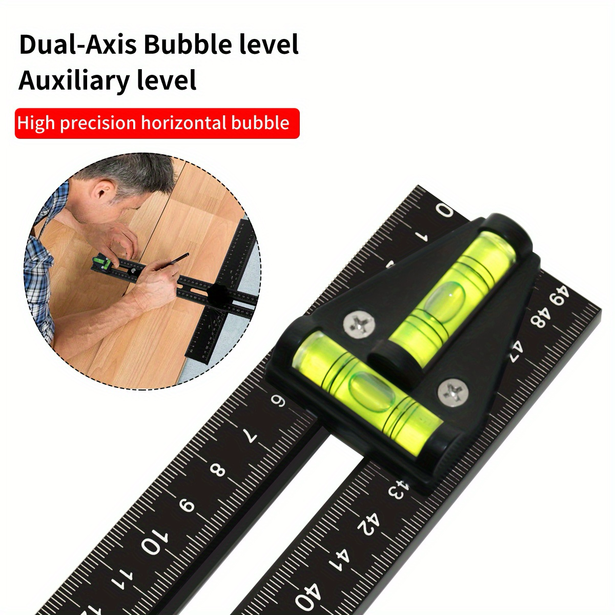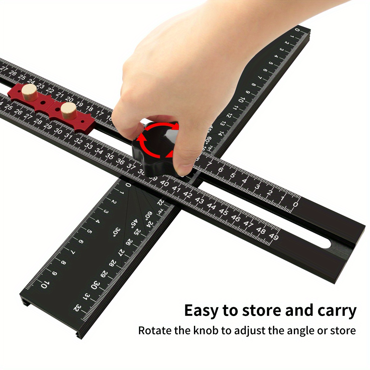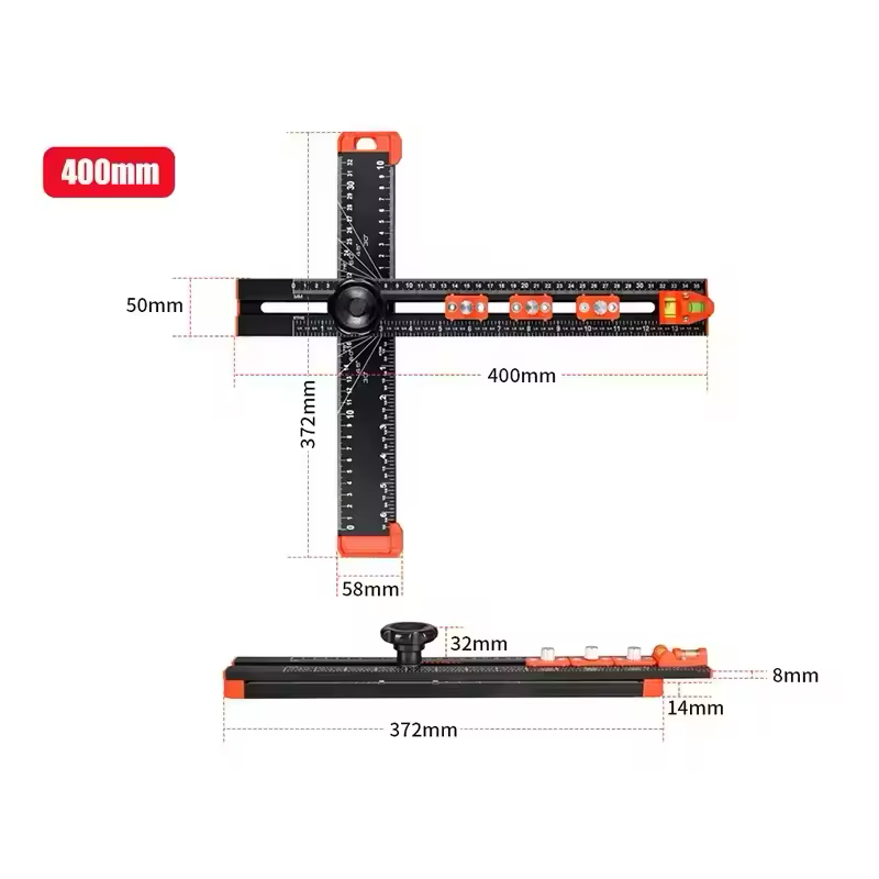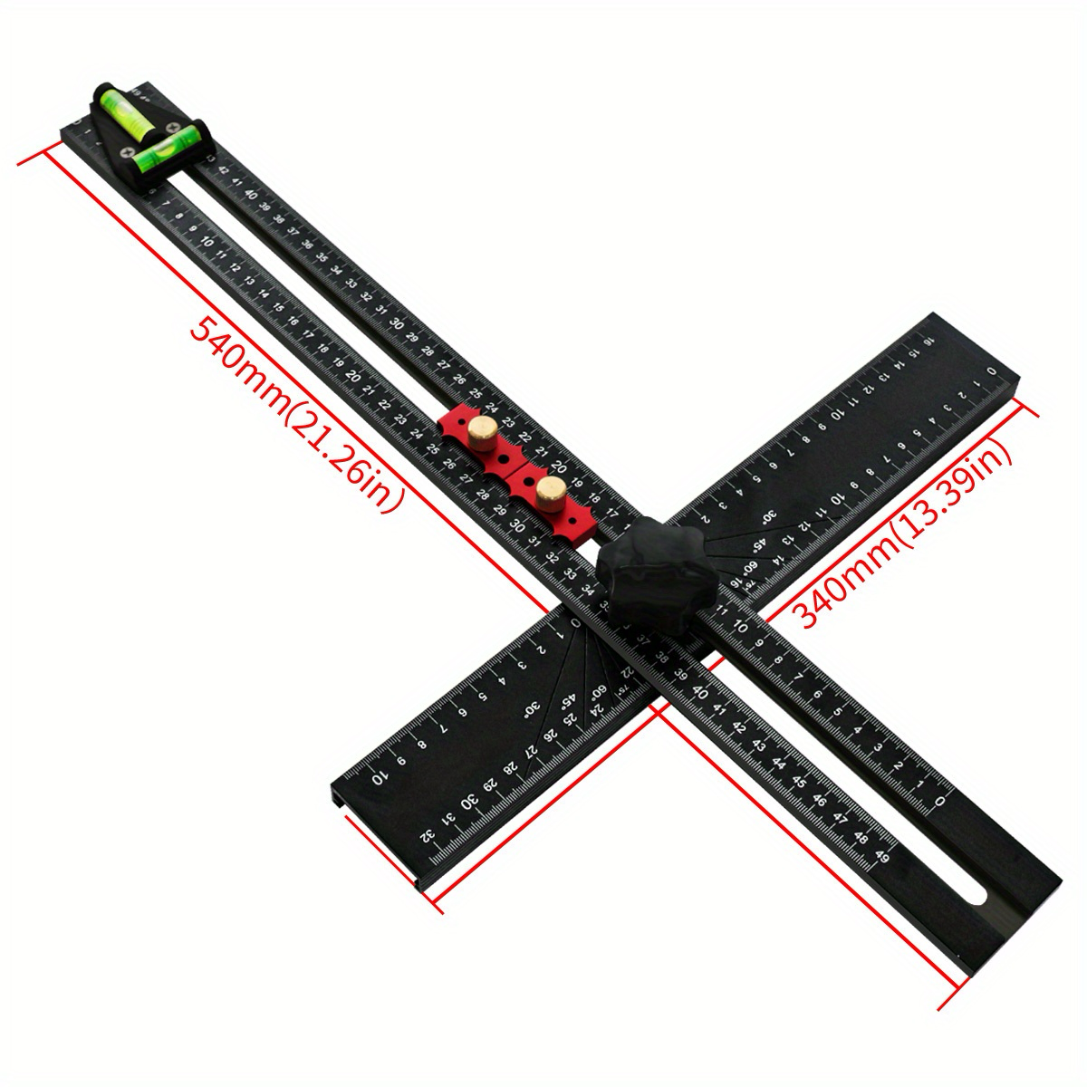 Das Lineal verfügt über deutlich markierte Abstände und Winkel und ermöglicht so präzise Messungen und Layouts für Ihre Projekte. Ob Sie Winkel messen, Schnitte markieren oder die Rechtwinkligkeit prüfen, dieses Werkzeug liefert konsistente und präzise Ergebnisse.